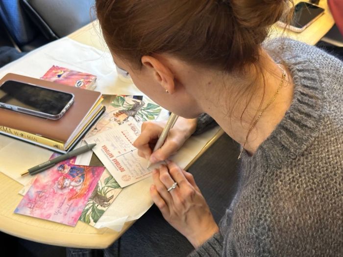 После лекции у пассажиров была возможность подписать праздничные открытки с «Сапсаном» и отправить прямо из поезда своим близким и друзьям, ненадолго возродив эту уютную традицию.